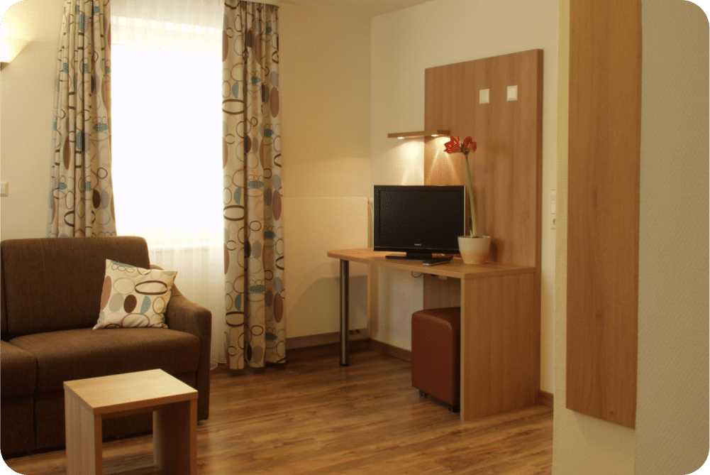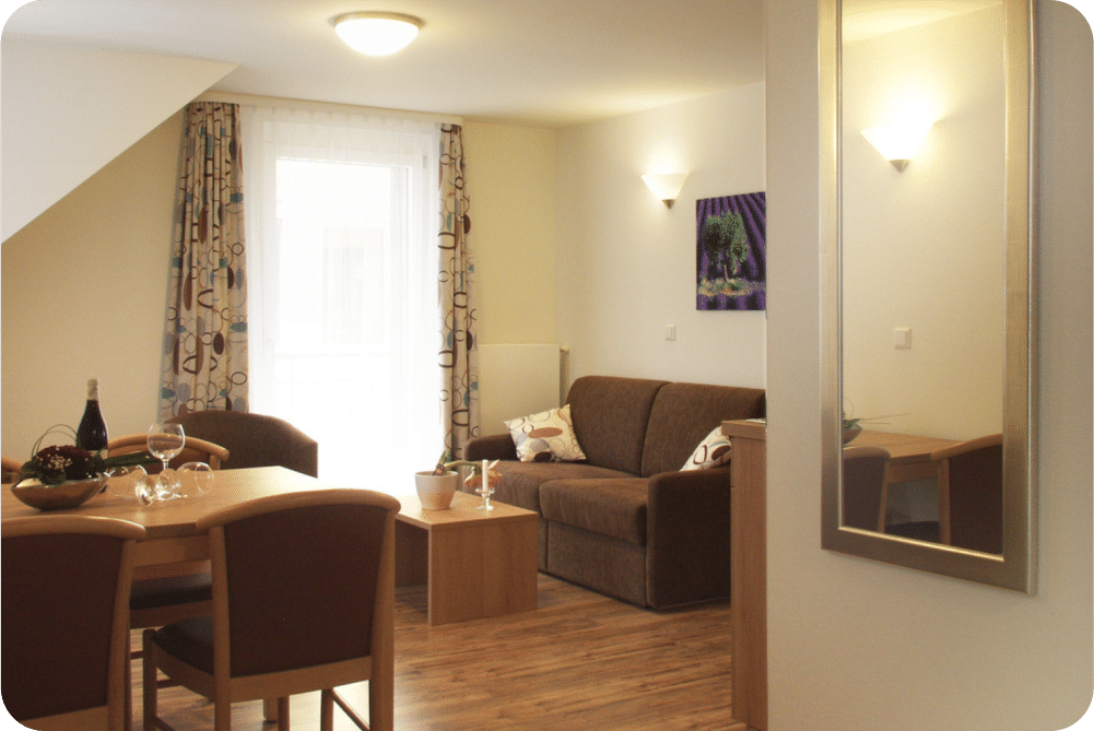 Unsere geräumigen Appartements bieten Ihnen allen Komfort eines Hotels mit der Freiheit und Flexibilität eines eigenen Zuhauses. Perfekt für Familien und längere Aufenthalte.