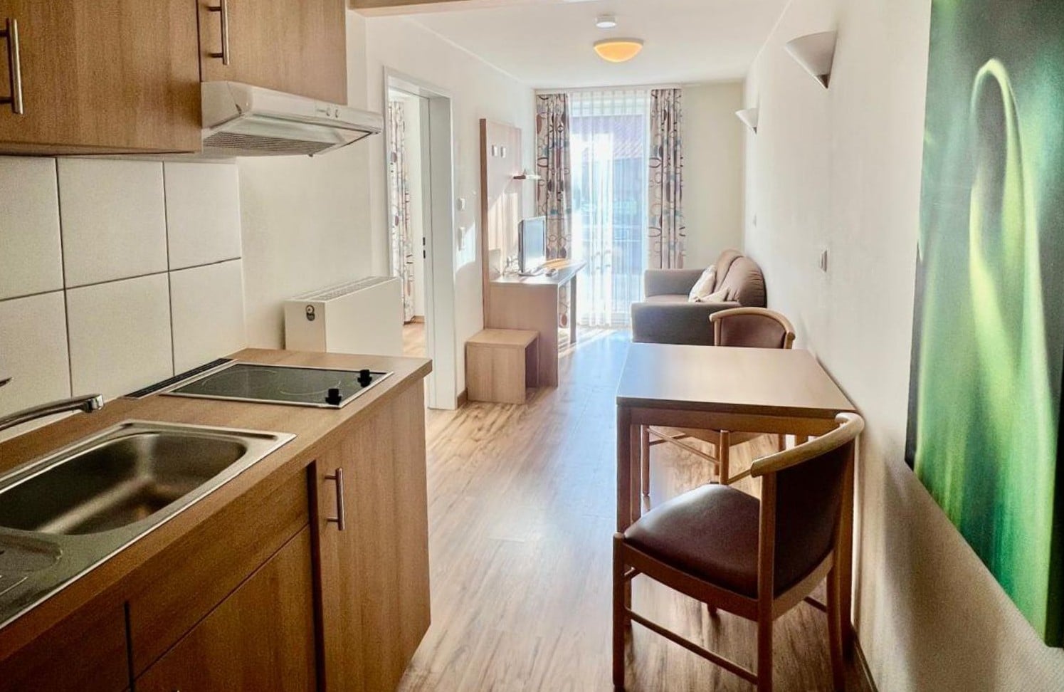 Unsere geräumigen Appartements bieten Ihnen allen Komfort eines Hotels mit der Freiheit und Flexibilität eines eigenen Zuhauses. Perfekt für Familien und längere Aufenthalte.